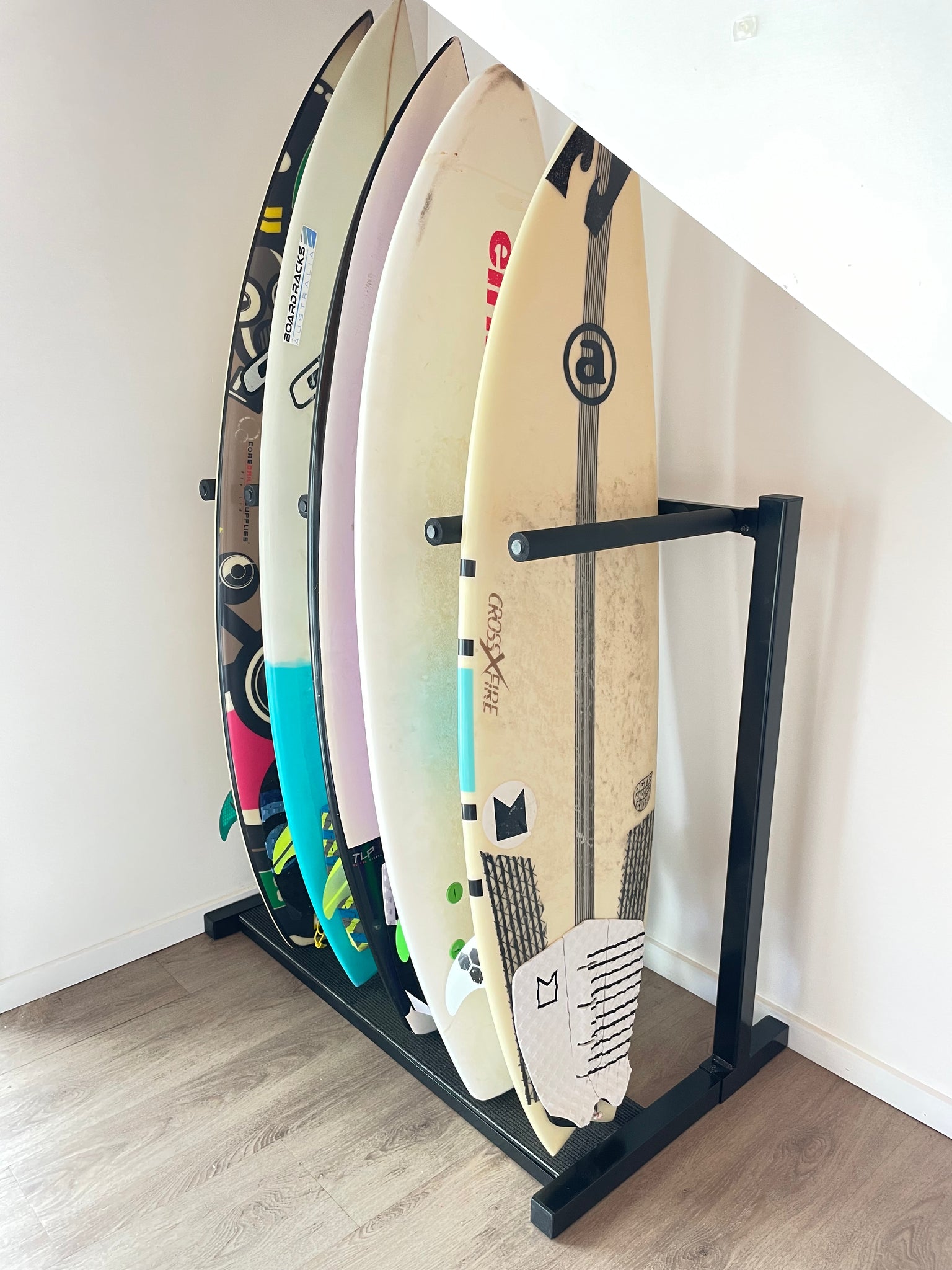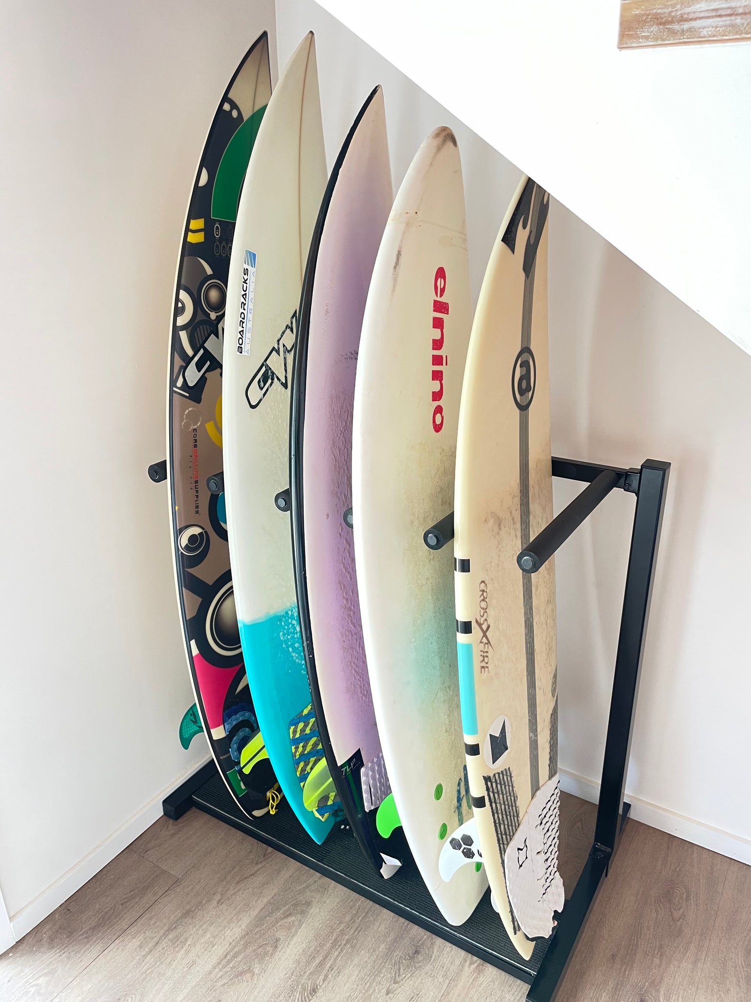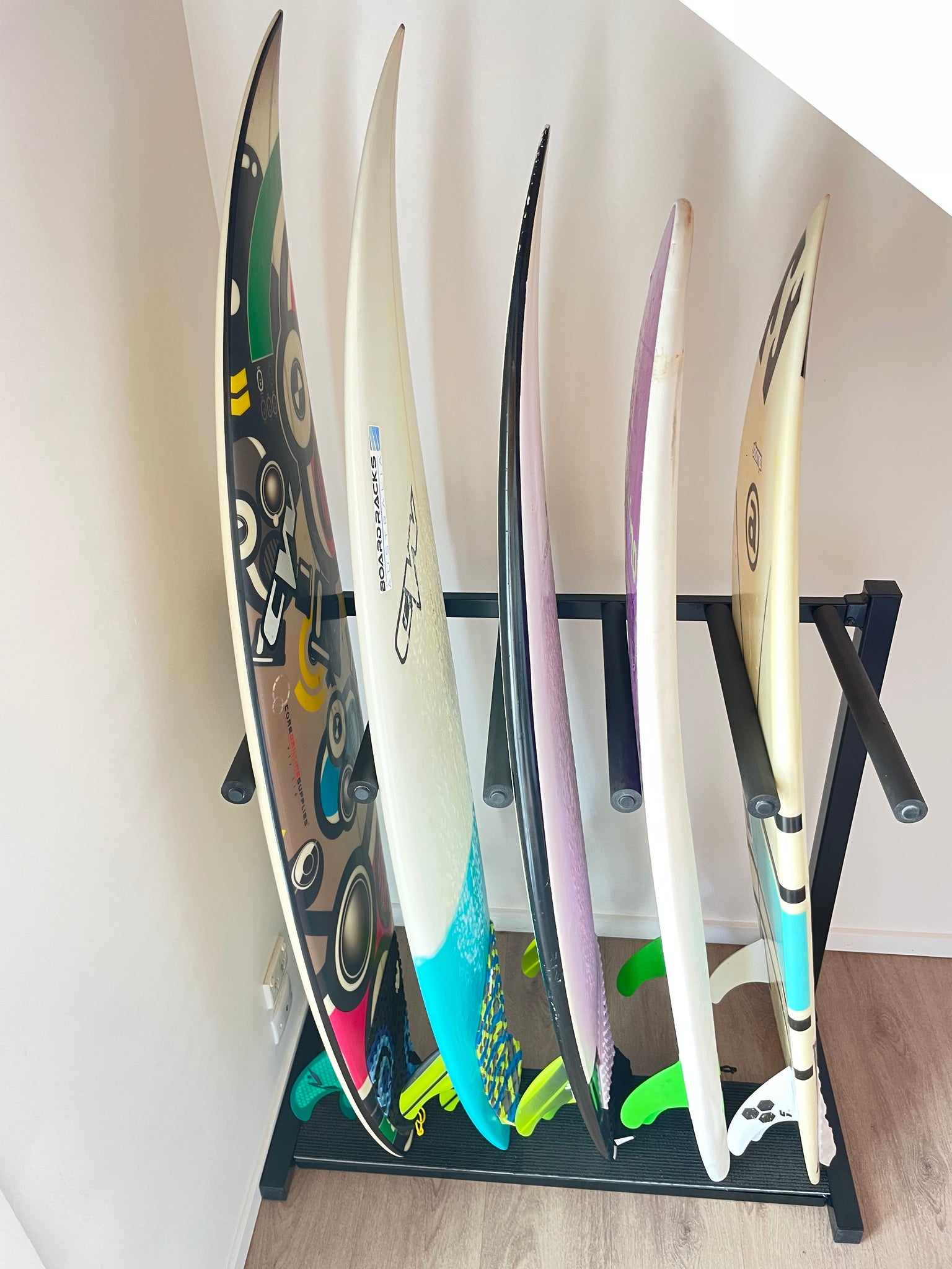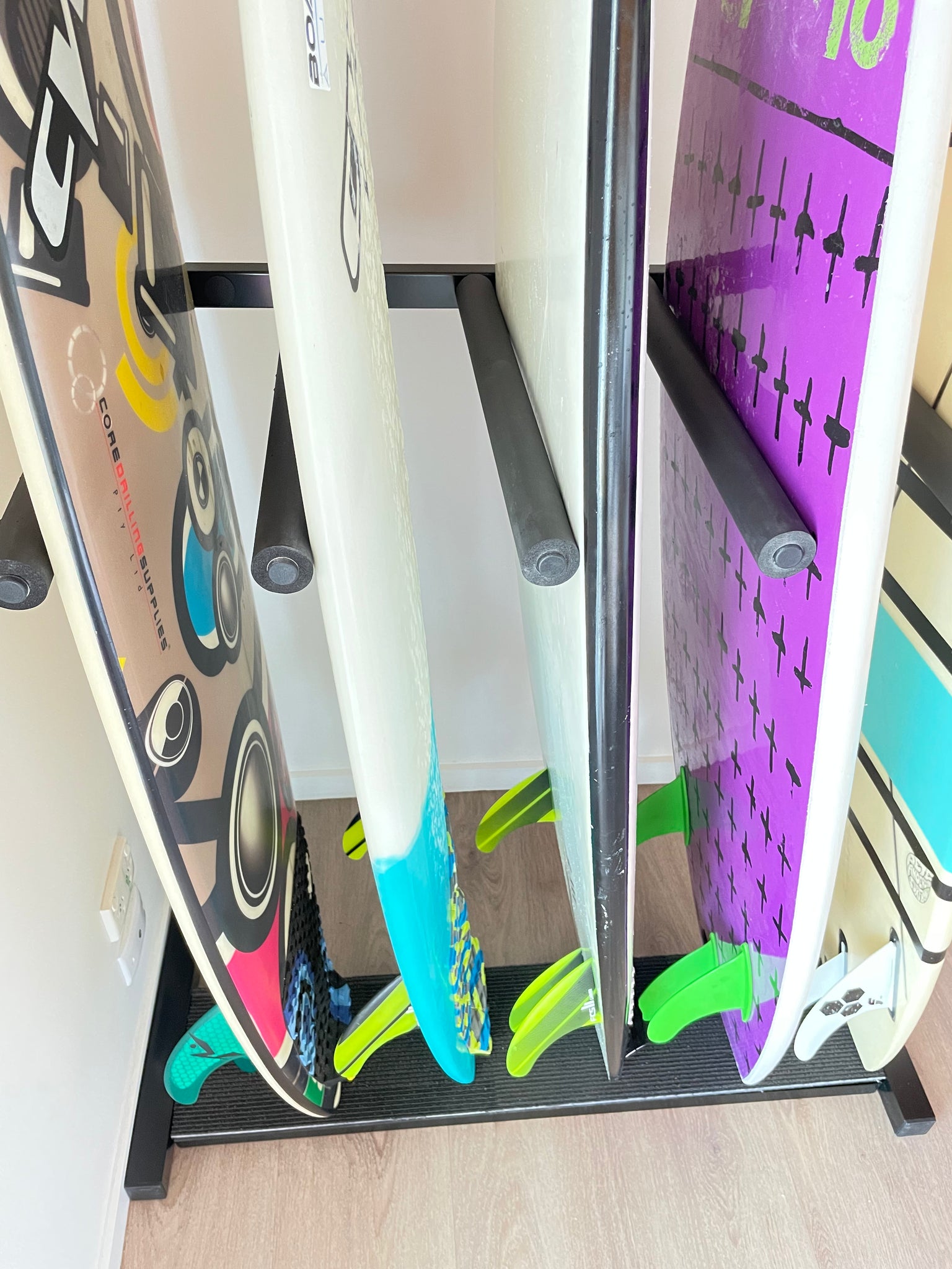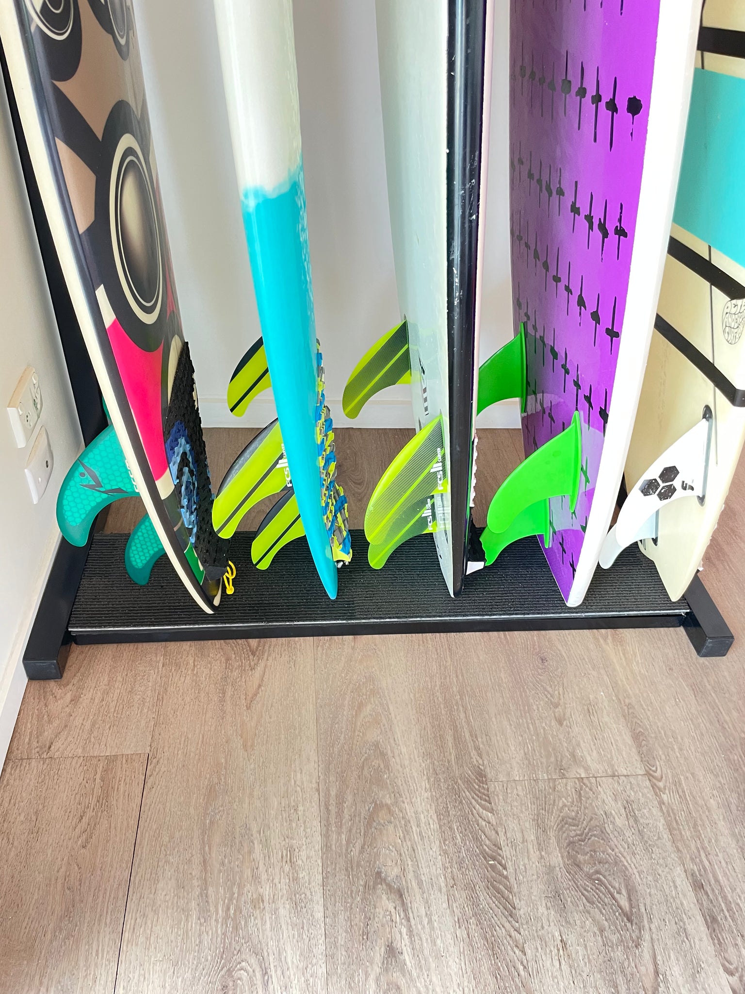 No more holes in walls. These are perfect for anyone renting a home or for those that don’t want any holes in walls. The freestanding surfboard rack will sit on any surface like carpet, tiles, timber flooring etc and comes with non slip rubber foam underneath.